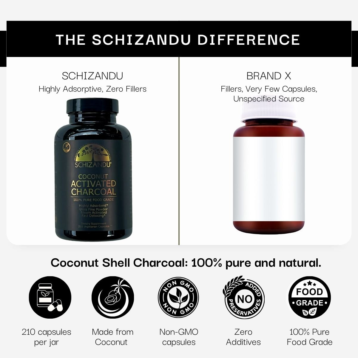 Cápsulas de carbón activado de coco orgánico 100 % de calidad alimentaria