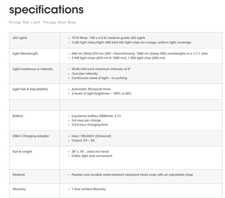 The Head Red Light Therapy Head Wrap combines 3 light wavelengths of red light: