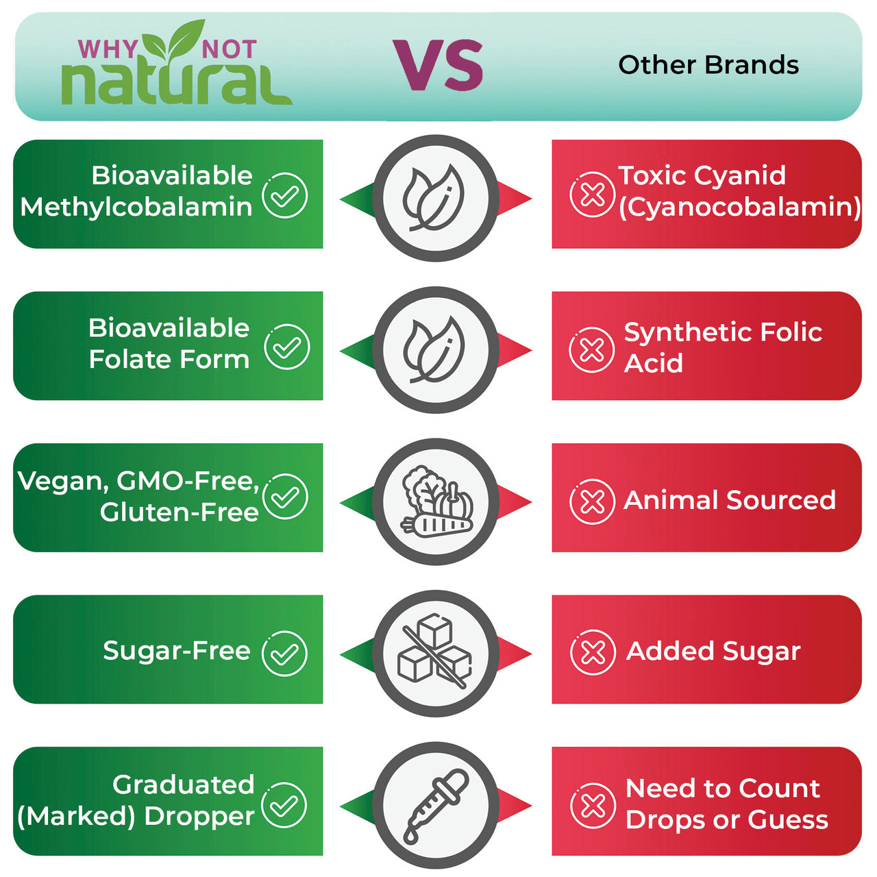 Vitamina B12 líquida más folato: gotas orgánicas y veganas de 2 oz