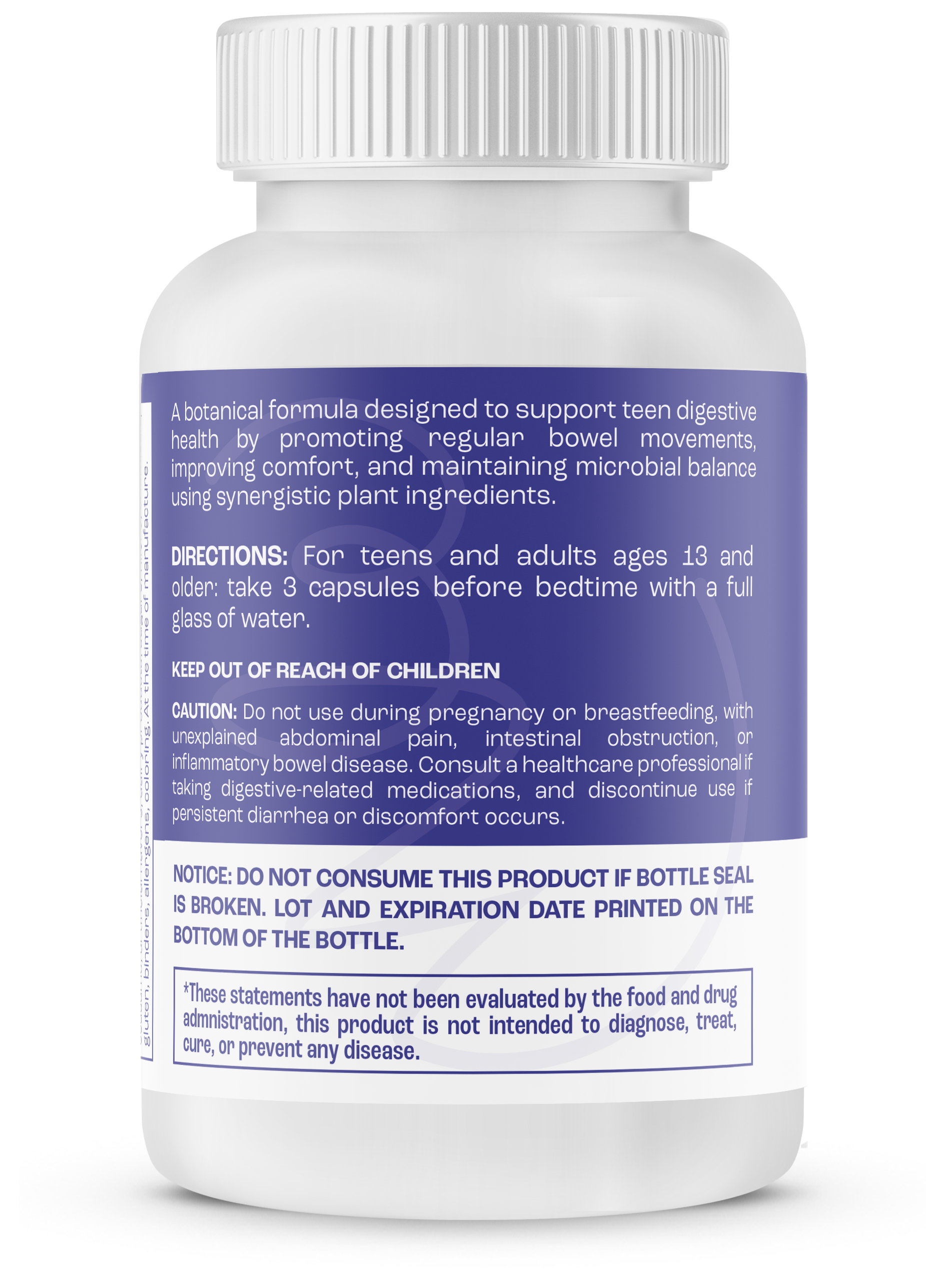 This botanical formula is designed to address common gastrointestinal issues in teens, such as: