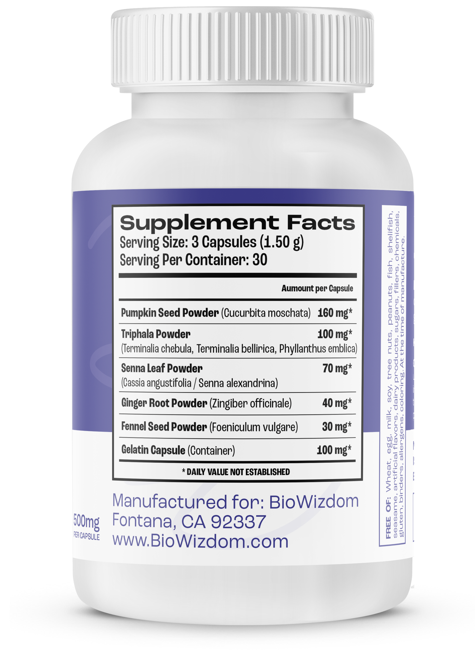 It combines plant-based ingredients to support gentle bowel regularity, promote microbial balance, and improve digestive comfort. Each ingredient is chosen for its traditional digestive health benefits and its ability to work synergistically with the others for a balanced effect.