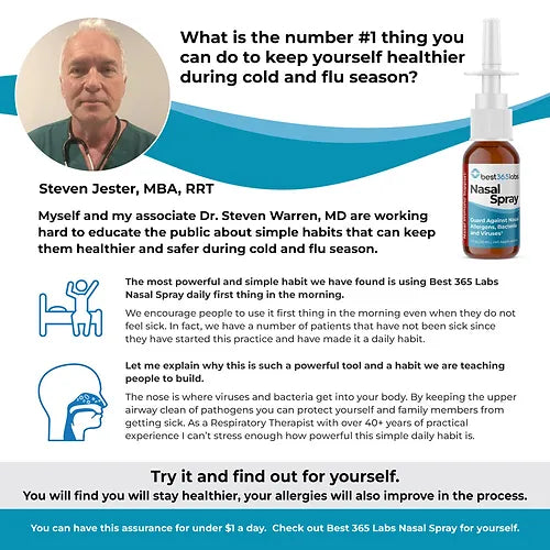 Just like washing our hands, washing out our nose and upper airways often with Best 365 Labs Nasal Spray can be vital at getting the upper airway to function at the highest level. Keeping these passages clean has many benefits.
