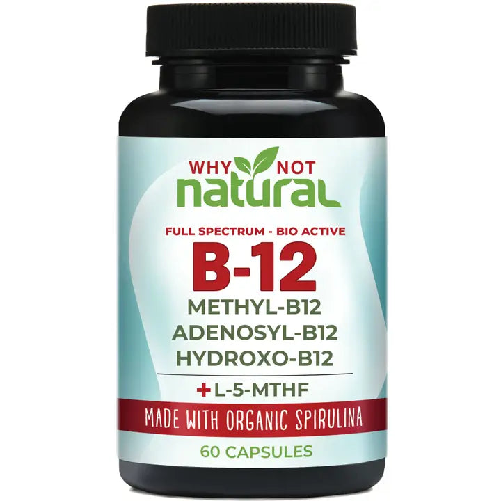 About this product 3 Natural bioactive B12 forms for optimal synergy: Our full spectrum vitamin B12 5000 mg complex contains all 3 active, naturally occurring coenzyme forms (methylcobalamin, adenosylcobalamin, and hydroxocobalamin) of B12 which each provide a different benefit for the body. Different people respond differently to each form, so an all-in-one supplement ensures effectiveness. 5000 mcg B12 + 1000 mcg methylfolate per capsule: Maximum strength cobalamin with 1000 mcg of methylated folate (L-5-MTHF) per serving. Works with B12 to lower homocysteine (important for heart and brain) and maintain healthy dopamine levels as well as normal sleep patterns. NO fillers! Methylcobalamin B12: the most common and bioavailable form in the body and the one needed to raise B12 level in the body and brain, helps with nervous system function, energy, and cognitive functioning.